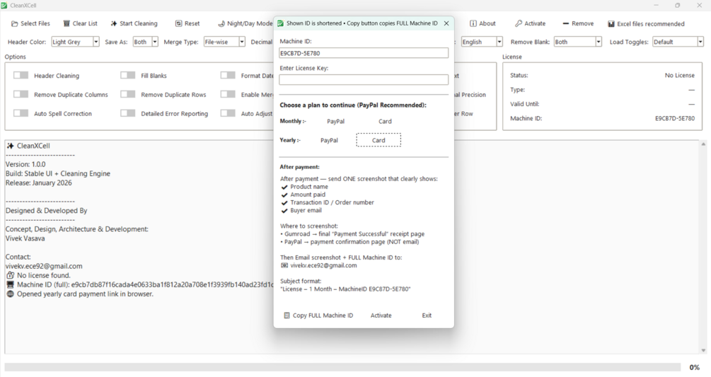 ✔ Or fallback: email screenshot + machine ID to: vivekv.ece92@gmail.com