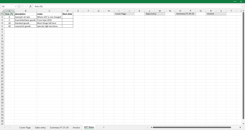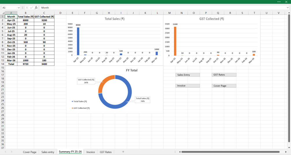 Smart GST Sales Tracker — Minimal Edition (FY 2025–26) — Excel Template