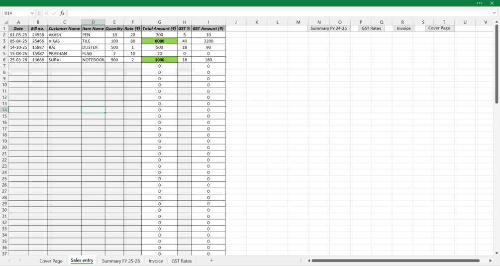 A clean, no-nonsense Excel template built for small Indian kirana shops, stationery and traders to record daily sales, auto-calculate GST, and generate monthly summaries.